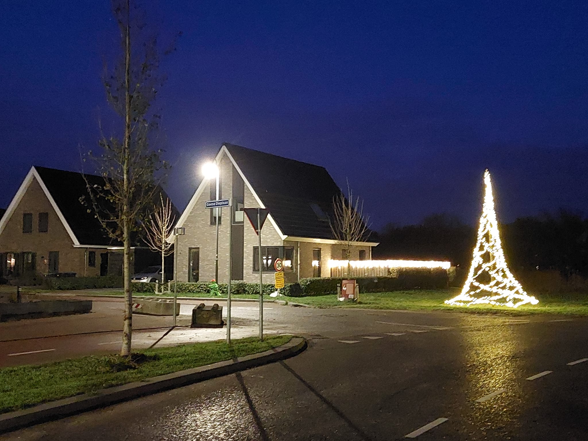 De wijkvereniging vindt het tijd om de wijk wat verder aan te kleden tijdens de feestdagen. Bij de ingang van de wijk, bij de Goese Dieplaan, staat nu een mooie feestelijke kerstboom. Iedere avond gaat hij aan om ongeveer 17:00 uur.