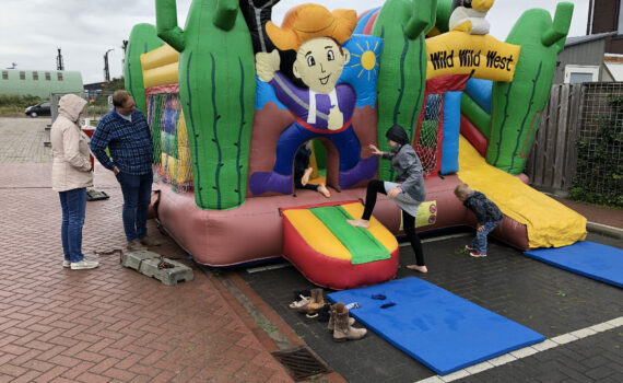 Onze eerste deelname aan Burendag. Door het slechte weer helaas een lage opkomst. Dat mocht toch de pret niet drukken met een opblaaskasteel voor de kids en een heleboel oud-Hollandse spelletjes.
